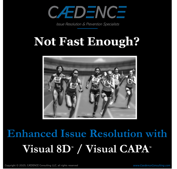 Teams can improve their problem solving and issue resolution cycle time with Visual 8D™ / Visual CAPA™.